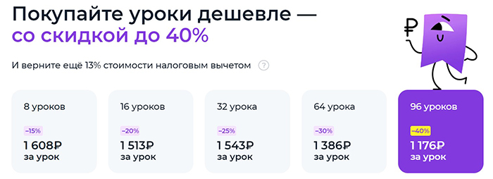 Стоимость уроков в онлайн-школе Online.algoritmika.org зависит от величины пакета. Чем больше уроков вы оплатите за раз, тем ниже себестоимость каждого. Например: