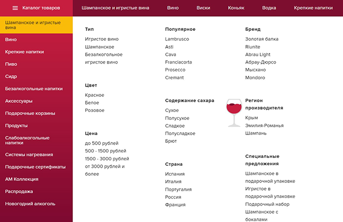 Интернет-магазин Amwine.ru предлагает вниманию покупателей разнообразные алкогольные и безалкогольные напитки, а также аксессуары. Онлайн-витрина позволяет выбрать среди широкого ассортимента – в каталоге представлено более 3 500 наименований. Товары распределены по тематическим категориям: