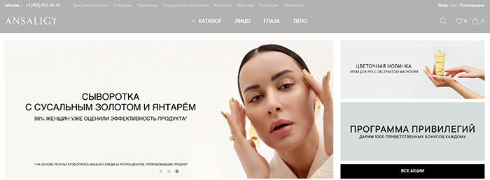 Тем, кто хочет приобрести качественную косметику, интернет предоставляет гораздо больше возможностей, чем любой магазин. Не отходя от компьютера, вы подберете косметические продукты с эффективными инновационными формулами. Именно такие товары предлагает интернет-магазин Ансалиджи. Уходовые средства, которые представлены в каталоге, помогут сохранить красоту и молодость. Но вам понравится не только большой выбор продукции. Здесь покупателей ждут регулярные акции и скидки. Кроме того, вы можете сэкономить с помощью промокодов, опубликованных на нашем сайте.