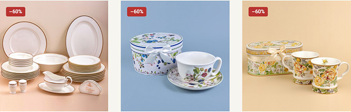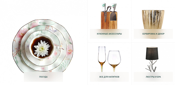 Большое внимание дизайнеры компании уделяют сервировке. Поэтому в магазине можно приобрести оригинальные вазы разного размера, подсвечники, фоторамки, подарочную упаковку.