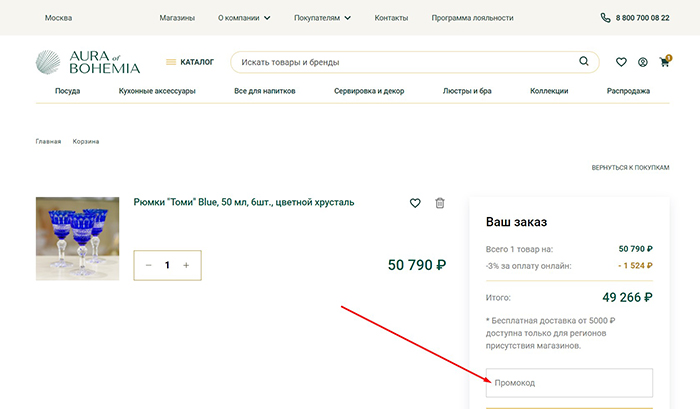 Если в вашем городе есть розничные магазины Аура Богемии, можно дополнительно сэкономить на доставке. Она будет бесплатной для всех заказов, сумма которых превышает 5000 рублей.