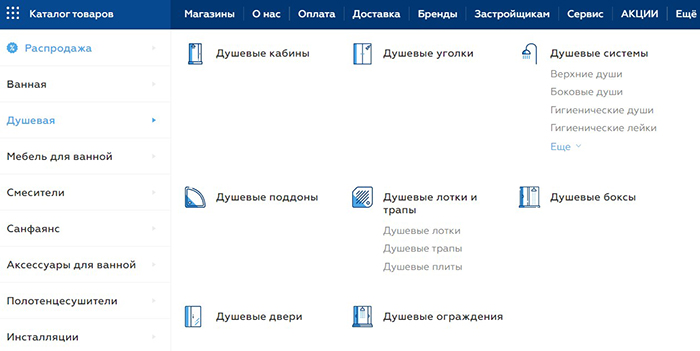 Также тут можно подобрать аксессуары и химию для ванной. Вся продукция распределена по тематическим категориям, поэтому с выбором не возникнет проблем.