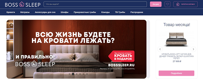 Также в магазине Босс Слип регулярно действует акция «Товар месяца». В ней участвуют популярные товары, которые продаются по специальной цене.