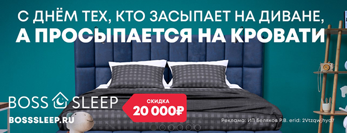 За подписку на информационную рассылку Босс Слип дарит персональный промокод со скидкой 3000 руб. Его можно использовать однократно. Форма для подписки находится во всплывающем окне — достаточно оставить адрес электронной почты.
