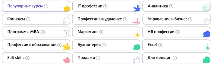 На сайте есть вспомогательные курсы по психологии, программы МВА, курсы для тех, кто осваивает профессии из сферы HR, бухгалтерии или маркетинга. Также тут можно разобраться в том, что такое soft skills, научиться пользоваться полезным ПО, подобрать профессию для удаленной работы.