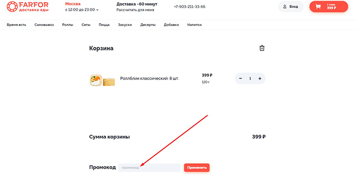 Чтобы воспользоваться промокодом и получить шикарную скидку на понравившиеся блюда на сайте Farfor.ru, нужно следовать небольшой инструкции: