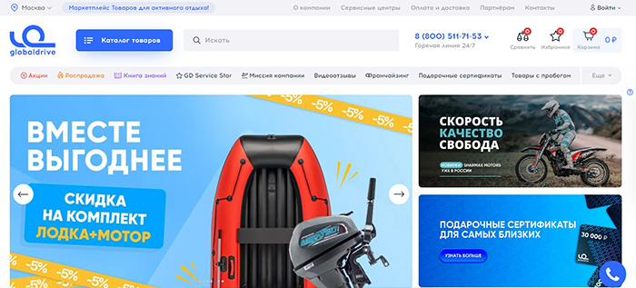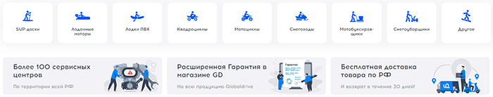 Работающая с 2009 года компания Глобал Драйв прекрасно знает, что вам нужно для активного отдыха, и предоставляет качественную технику от ведущих производителей с гарантией. Вы можете подобрать здесь и моторную лодку, и квадроцикл, и снегоход! Главный плюс официального интернет-магазина в том, что вы можете найти отличные товары по сниженным ценам или получить весомую скидку, если воспользуетесь промокодом с нашего ресурса. Не забывайте заглядывать к нам, чтобы найти нужную акцию!