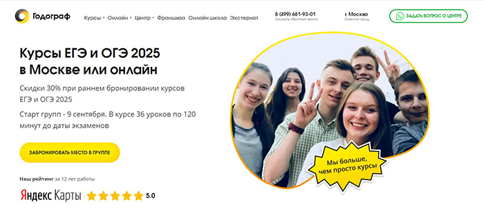 Годограф – курсы по подготовке к ЕГЭ и ОГЭ. Обучение проходит очно в Москве или онлайн, независимо от вашего местонахождения. Для доступа к платформе достаточно бюджетного ноутбука или смартфона.