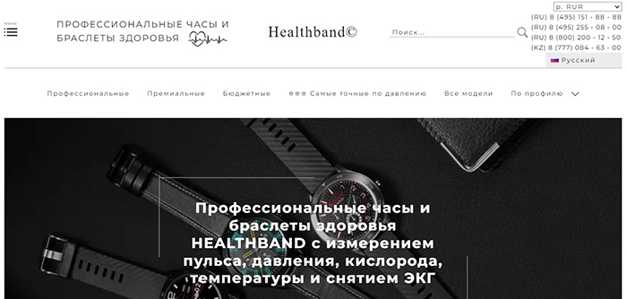 Компания предлагает вниманию покупателей качественные профессиональные часы и браслеты здоровья. В официальном интернет-магазине Healthband.net в верхнюю панель меню вынесены основные категории: