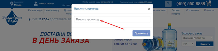 Все актуальные промокоды для сервиса Хваловские воды собраны на нашем сайте. Обратите внимание: мы публикуем информацию не только о промокодах, но и акциях, которые проходят в магазине. Чтобы получить скидку в рамках акции, достаточно выполнить ее условия. Промокод же используется по другой схеме: