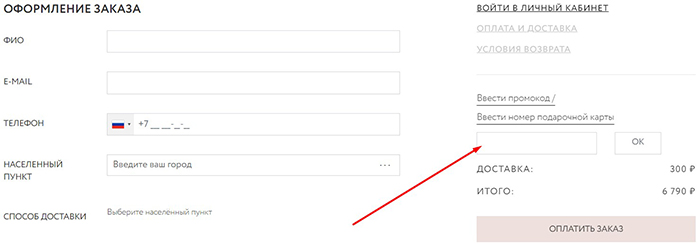 После того как Корзина собрана, рекомендуем заглянуть на наш сайт: мы собрали бесплатные промокоды, которые помогут получить дополнительную скидку в магазине Инспайр. Изучите условия активации, найдите те, что подходят для вашего заказа, скопируйте уникальный набор символов в описании – сам промокод. После этого: