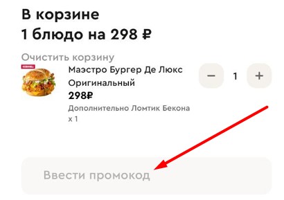 Далее потребуется скачать и установить приложение с официального сайта Ростикс. Вы легко сможете найти нужные блюда и сформировать заказ в Корзине. Открыв ее для дальнейшего оформления, можно ввести промокод, чтобы автоматически рассчиталась скидка на заказ.