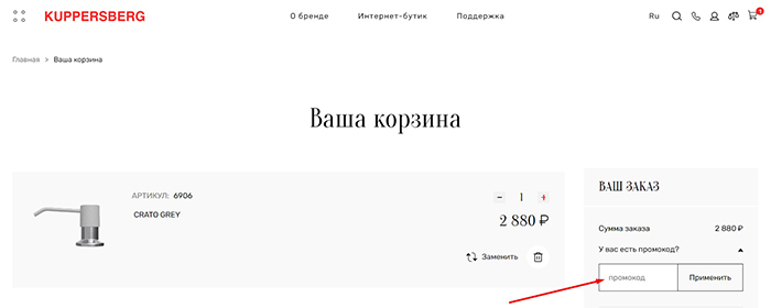 Будьте внимательны: в рамках одного заказа можно использовать всего один промокод для Kuppersberg.ru. Если товар уже продается со скидкой, промокод может не сработать.