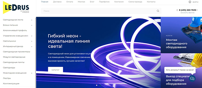 Ледрус – интернет-магазин, который специализируется на продаже светодиодного оборудования. В ассортименте есть все, что может понадобиться для организации освещения в жилом доме, общественном заведении или офисе: точечные светодиоды, ленты, светильники, люстры.