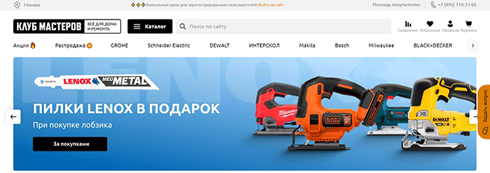Интернет-магазин предлагает широкий ассортимент продукции от известных брендов: Dewalt, Grohe, Bosch, Makita и других. Он сотрудничает с авторизированными сервисными центрами, дает официальную гарантию. Если товар не подойдет, его можно вернуть в течение 60 дней. А для дополнительной экономии удобно пользоваться промокодами, собранными у нас на сайте.