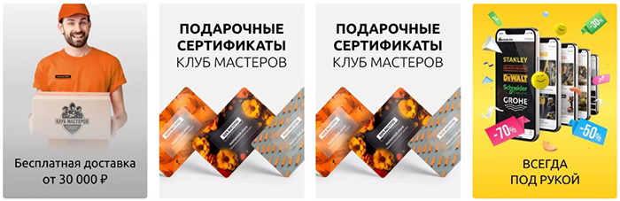 Для начала выберите промокод из числа тех, которые опубликованы на нашем сайте. Они отличаются не только размером скидки, но и особенностями активации. Если условия применения скидочного купона устраивают, скопируйте набор символов в описании и переходите на сайт Клуб Мастеров.