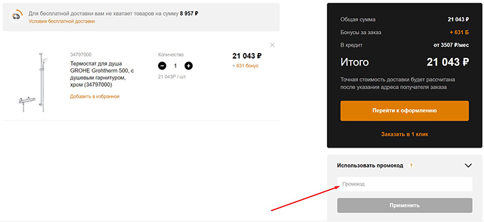 Когда промокод активируется, и стоимость товаров в Корзине снизится на размер скидки, можно переходить к оформлению заказа, выбирать способ оплаты и доставки.