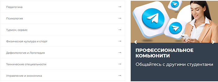 Образовательная платформа предоставляет возможность дистанционного обучения по ряду направлений. Подобрать подходящий курс можно по: