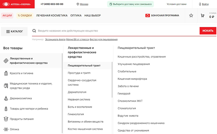 Каталог аптечного онлайн-гипермаркета Ozerki.ru включает множество разделов. Здесь вы можете заказать: