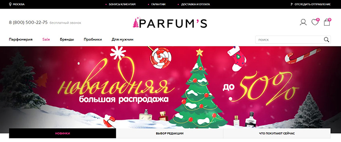В разделе Sale представлены все товары, которые продаются со скидками. Скидки весьма заманчивые – на некоторые позиции до 50%. Благодаря этому можно подобрать оригинальный парфюм по привлекательной цене.