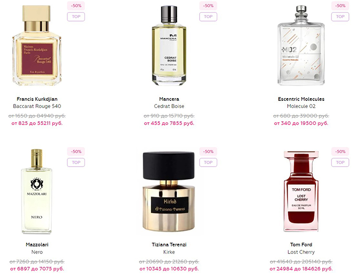 Парфюмс ру – интернет-магазин элитной и нишевой парфюмерии. Он продает оригинальную продукцию Montale, Nina Ricci, Escentric Molecules и других известных брендов. Парфюмы доступны в разных форматах, включая миниатюрные пробники для тестирования. А чтобы любовь к ароматам не обошлась вам слишком дорого, рекомендуем использовать промокоды, которые собраны у нас на сайте.