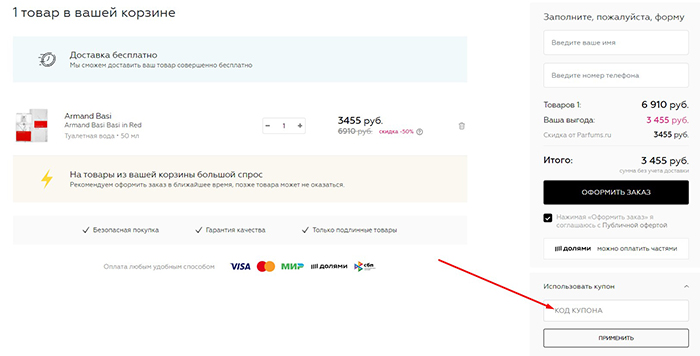 Сэкономить в магазине Парфюмс ру можно и на доставке. Если сумма заказа превысит 2000 руб., доставка будет бесплатной.