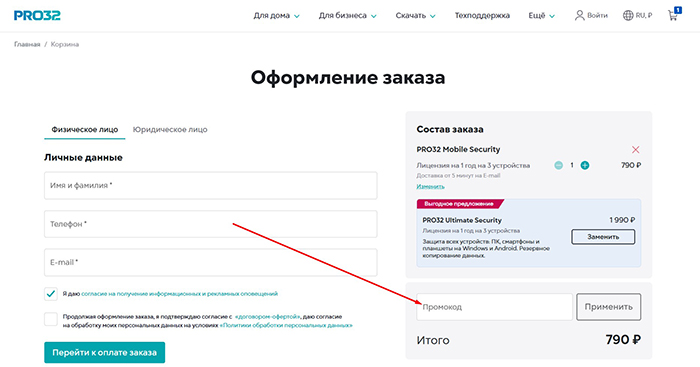 Мы подобрали промокоды, которые позволяют сэкономить при покупке качественного программного обеспечения от ПРО 32. Вы можете выбрать любой из купонов, скопировать и использовать при оформлении заказа на сайте Pro32.com. Активация промокода происходит следующим образом: