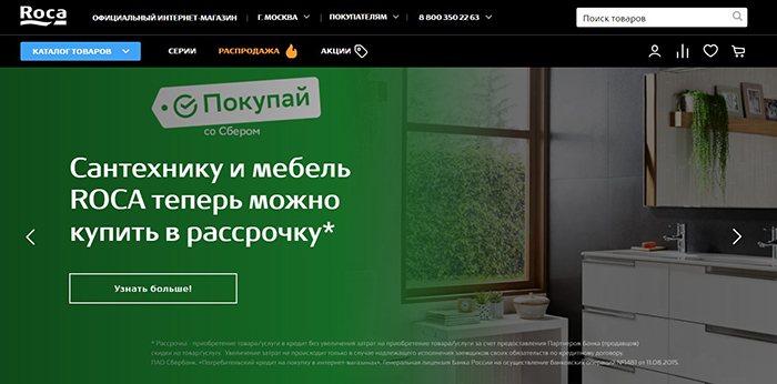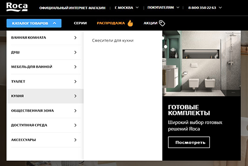 В обширном каталоге Shop.roca.ru товары распределены по тематическим разделам. Здесь представлены: