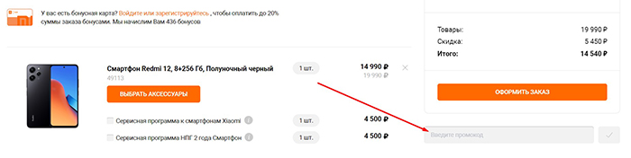 Для подтверждения промокода нажмите «галочку» справа. Теперь можно переходить к оплате заказа.