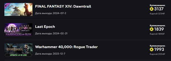 Для удобства на сервисе Steam.kupikod.com предусмотрена гибкая система фильтров, которая позволяет пополнить баланс в конкретной игре. Вы можете указать год выхода игры, ее жанр или отсортировать все доступные игры по стоимости, дате выхода, отзывам. В отдельную категорию собраны игры, которые официально недоступны в РФ, но могут быть оплачены с помощью сервиса.
