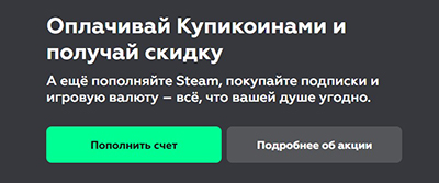 Обратите внимание: на сервисе Steam.kupikod.com есть два вида специальной валюты – Купикоины и Купибонусы. Оба вида валюты эквивалентны рублям, но имеют некоторые отличия.