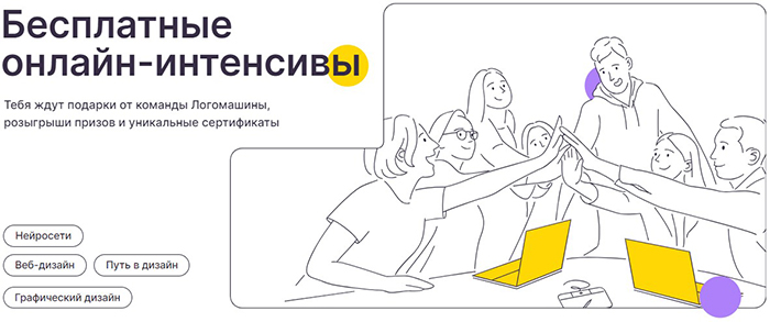 Логомашина регулярно публикует материалы для общего доступа, которыми могут воспользоваться все желающие. Это онлайн-интенсивы, помогающие найти свой путь в дизайне, ознакомиться с возможностями нейросетей, познакомиться с основами графического и веб-дизайна. Мало того что участвовать в интенсиве можно бесплатно – школа также дарит подарки и сертификаты отдельным участникам, и позволяет использовать проект в портфолио.