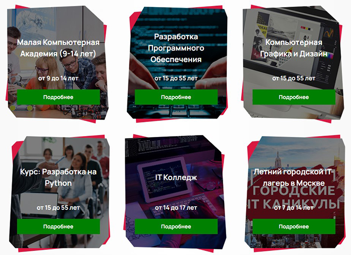 Детям доступны Малая Компьютерная Академия и IT-колледж, а также программы на каникулы.