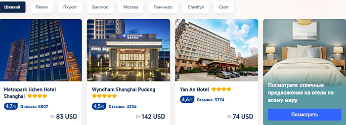 Сервис Trip.com предлагает приобрести авиа- или железнодорожные билеты, забронировать отель. Чтобы воспользоваться этими возможностями, достаточно заполнить форму на главной странице, указав точки отправления и назначения для покупки билетов, а также даты, либо выбрав направление, даты заезда и выезда и число номеров или гостей для оформления брони в гостинице.