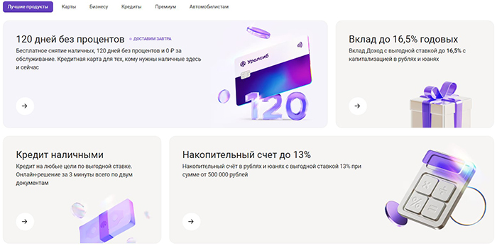 Уралсиб предлагает клиентам оформить следующие банковские продукты: