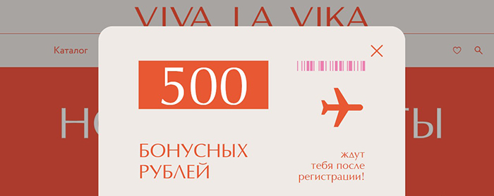 За регистрацию в программе лояльности Вива Ла Вика дарит 500 рублей. Чтобы зарегистрироваться, достаточно указать адрес электронной почты в окне, всплывающим после нескольких секунд пребывания на сайте. Условия участия в программе лояльности следующие: