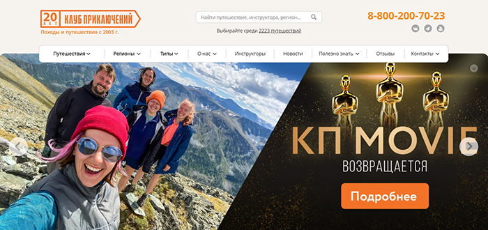 Компания Клуб Приключений занимается организацией путешествий – пеших походов в горы, сплавов на байдарках и катамаранах, йога-туров. Это приключения для любителей активного отдыха в России, странах Европы, Азии, Африки. В каталоге компании – 2275 путешествий.