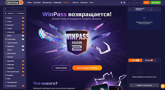 Винлайн также предлагает делать ставки на киберспорт – во время трансляции, или заранее. Среди доступных дисциплин есть Dota 2, Overwatch, Counter-Strike. Степень разнообразия зависит от популярности турнира: если речь идет о мировых или крупных региональных ивентов, вариантов будет действительно много.
