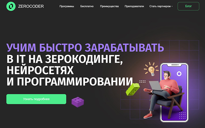 Зерокодер – онлайн-школа для тех, кто хочет научиться зерокодингу, работе с нейросетями, программированию, а также получить профессию в сфере IT. Обучение проходит в дистанционном формате: вы можете заниматься с преподавателями Zerocoder.ru, находясь в любой точке земного шара. В программах много практических материалов, которые так необходимы в работе. А чтобы обучение было не только полезным, но и доступным, стоит воспользоваться промокодами, собранными у нас на сайте!